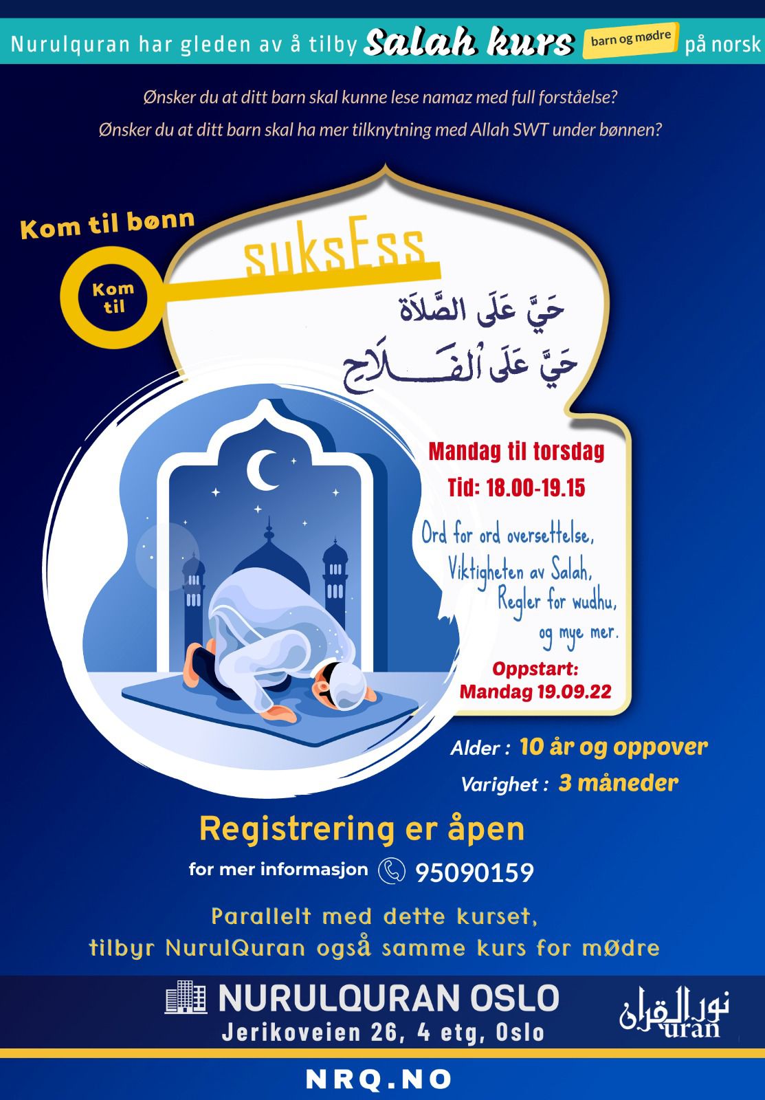 Nurulquran tilbyr Salah kurs med oversettelse for barn fra 10 år.